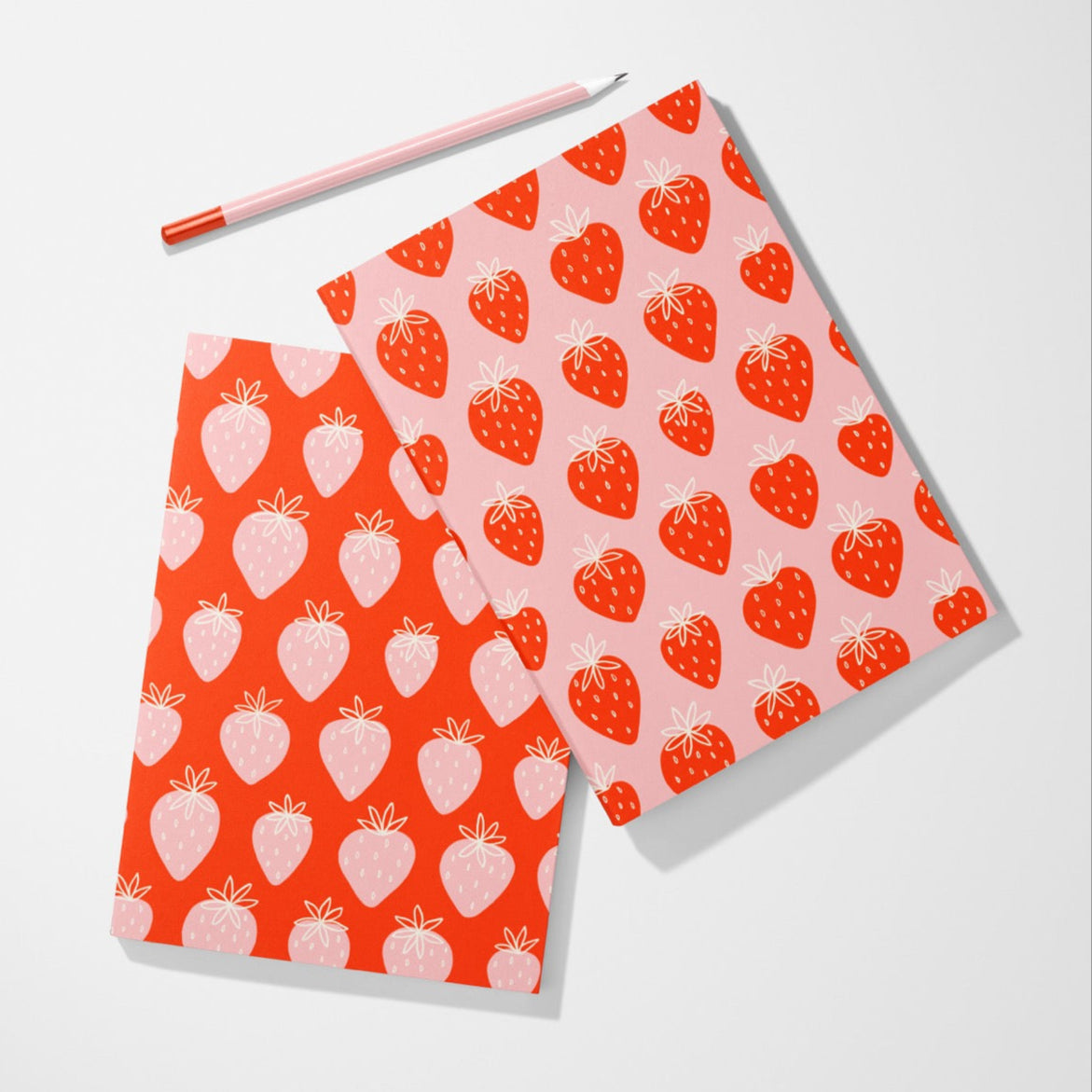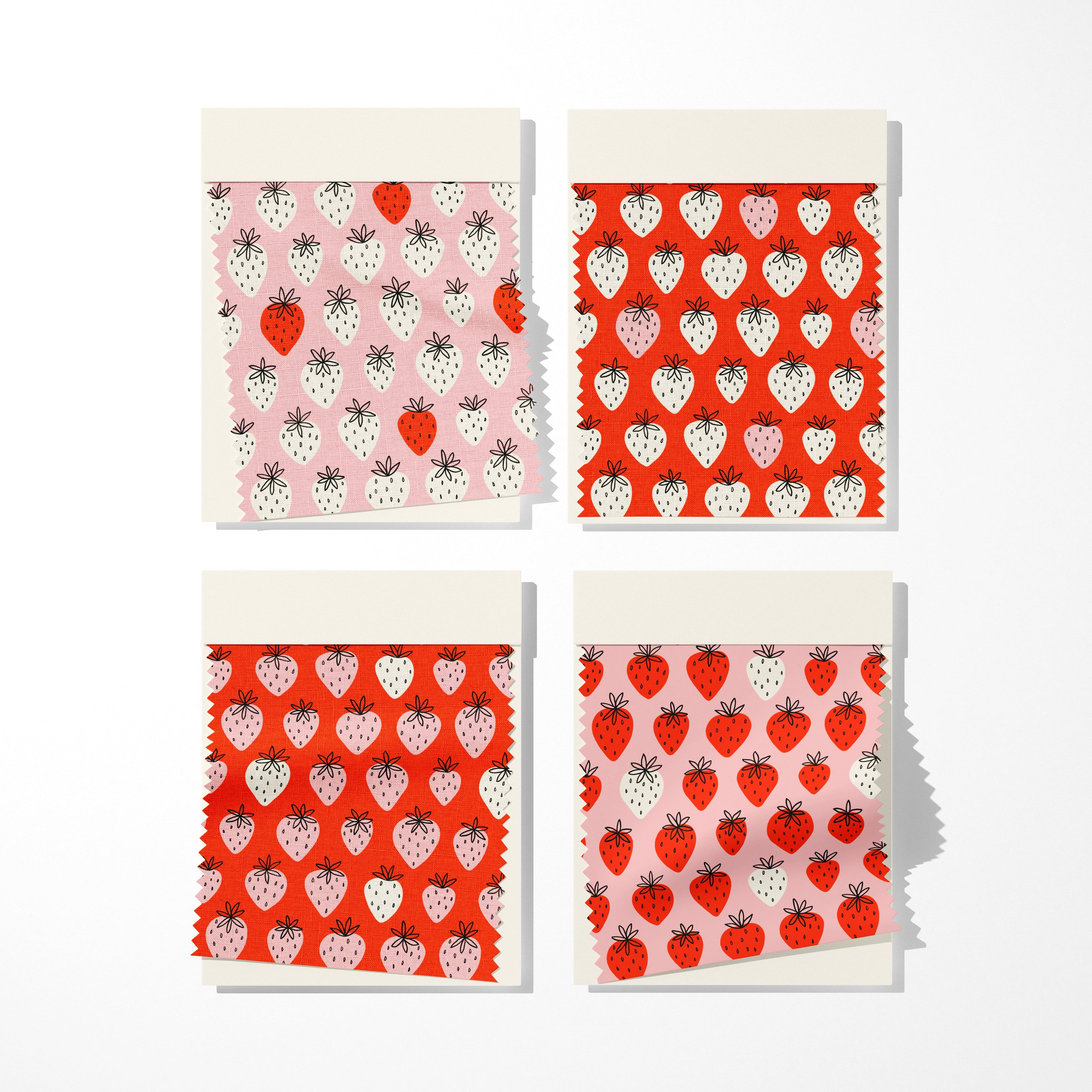 This design offers a modern twist on the classic strawberry pattern. A limited palette of vibrant red, soft pink, and creamy white gives it a fresh feel, balancing sweet, subtle tones with bold, eye-catching contrast.
