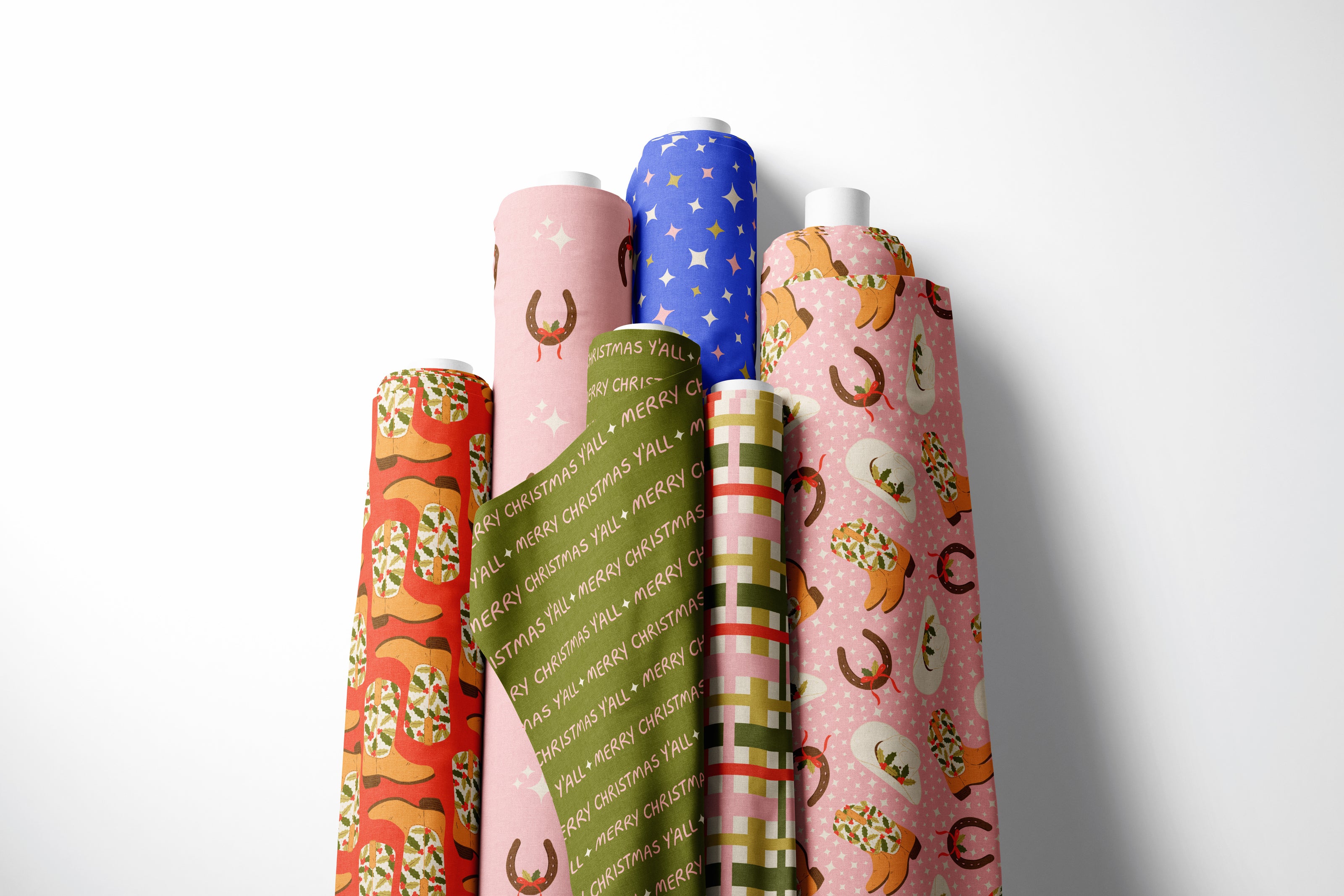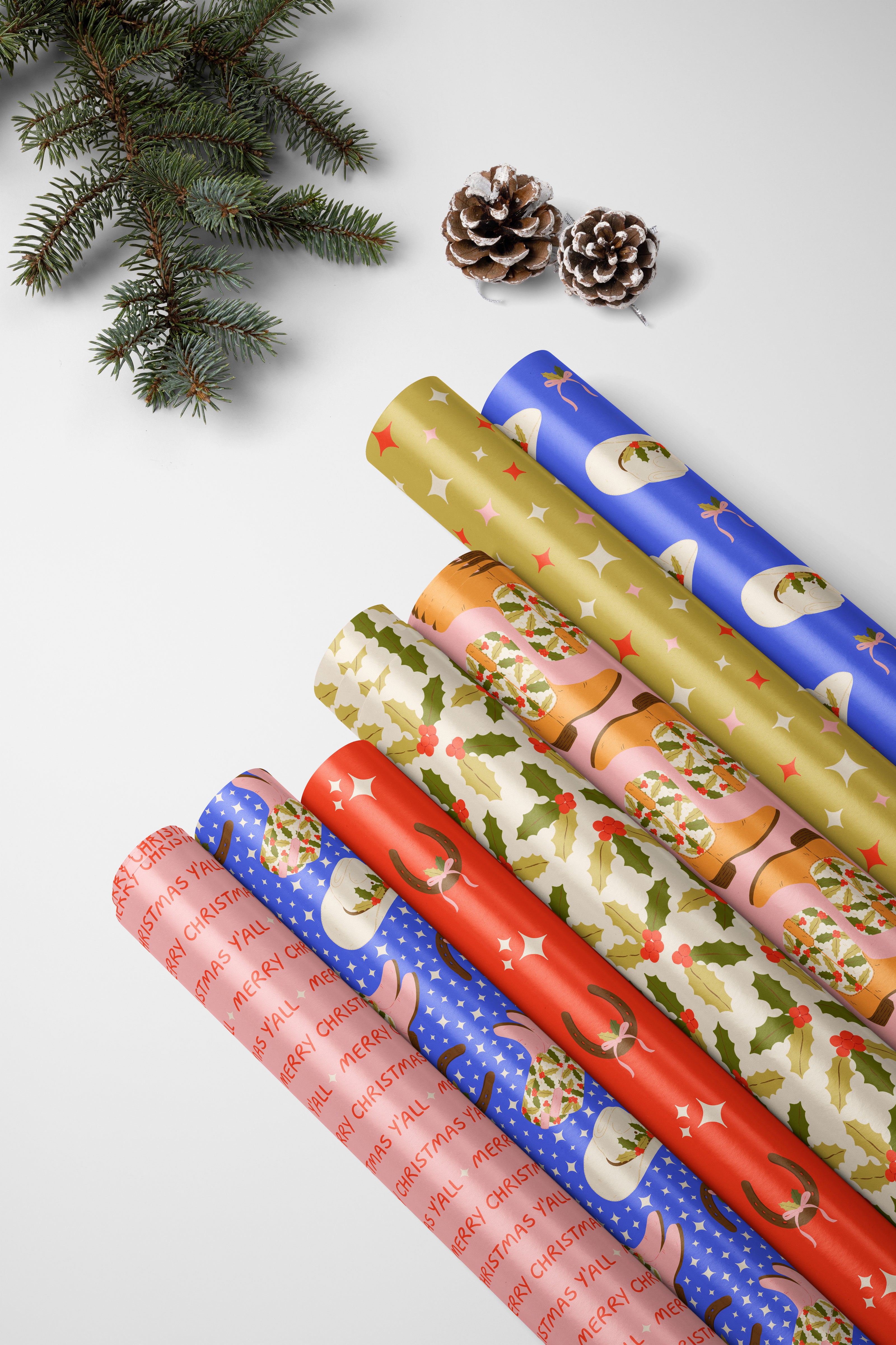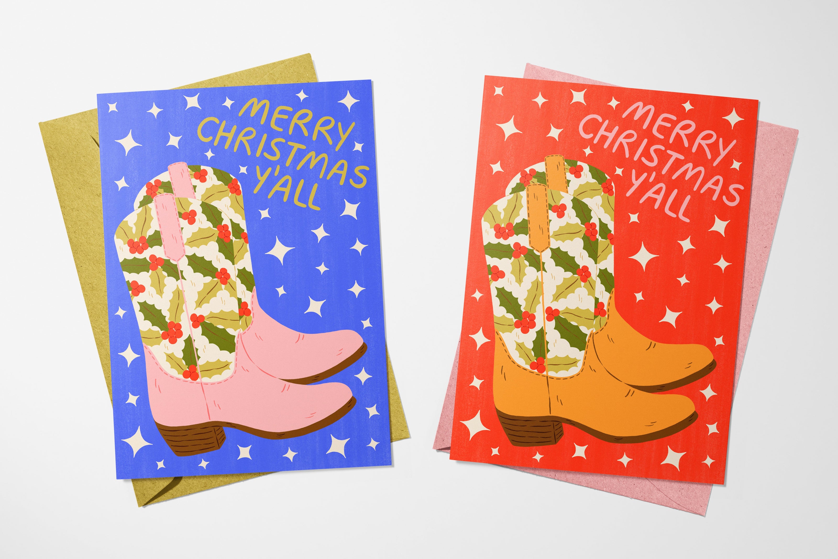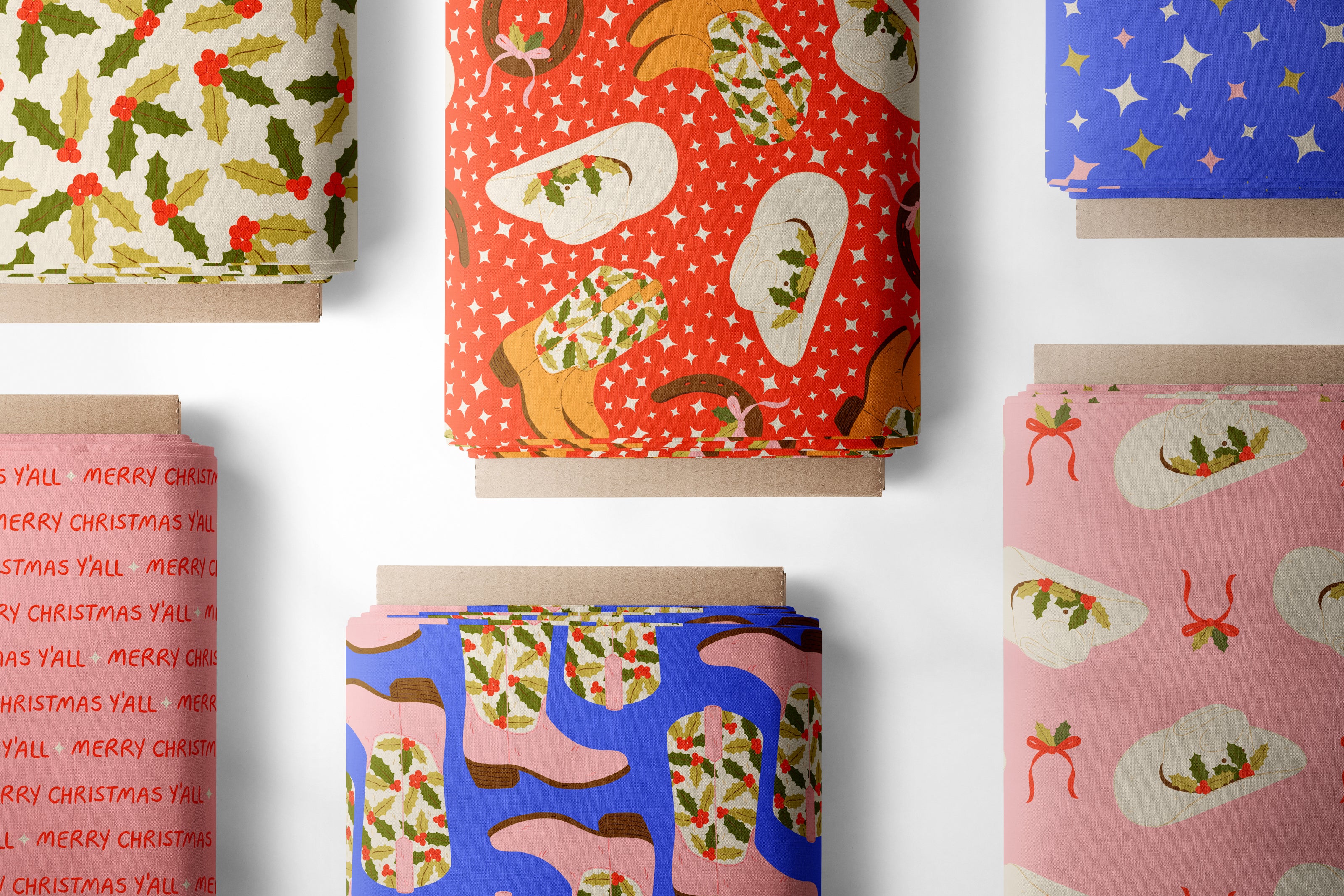 Inspired by my Texas roots, this collection brings a western twist to the holidays. It features cowboy boots, cowboy hats, and horseshoes adorned with holly for a perfect mix of country charm and Christmas cheer.