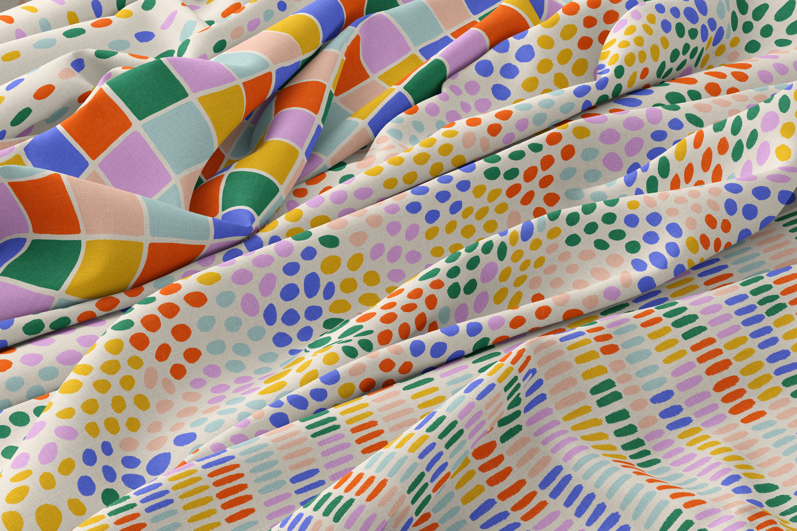 This mini collection is a cheerful mix of patterns featuring simple, but colorful, dots, dashes, and squares. These designs add a fresh, playful vibe to any project and are perfect for creating something fun and bold.
