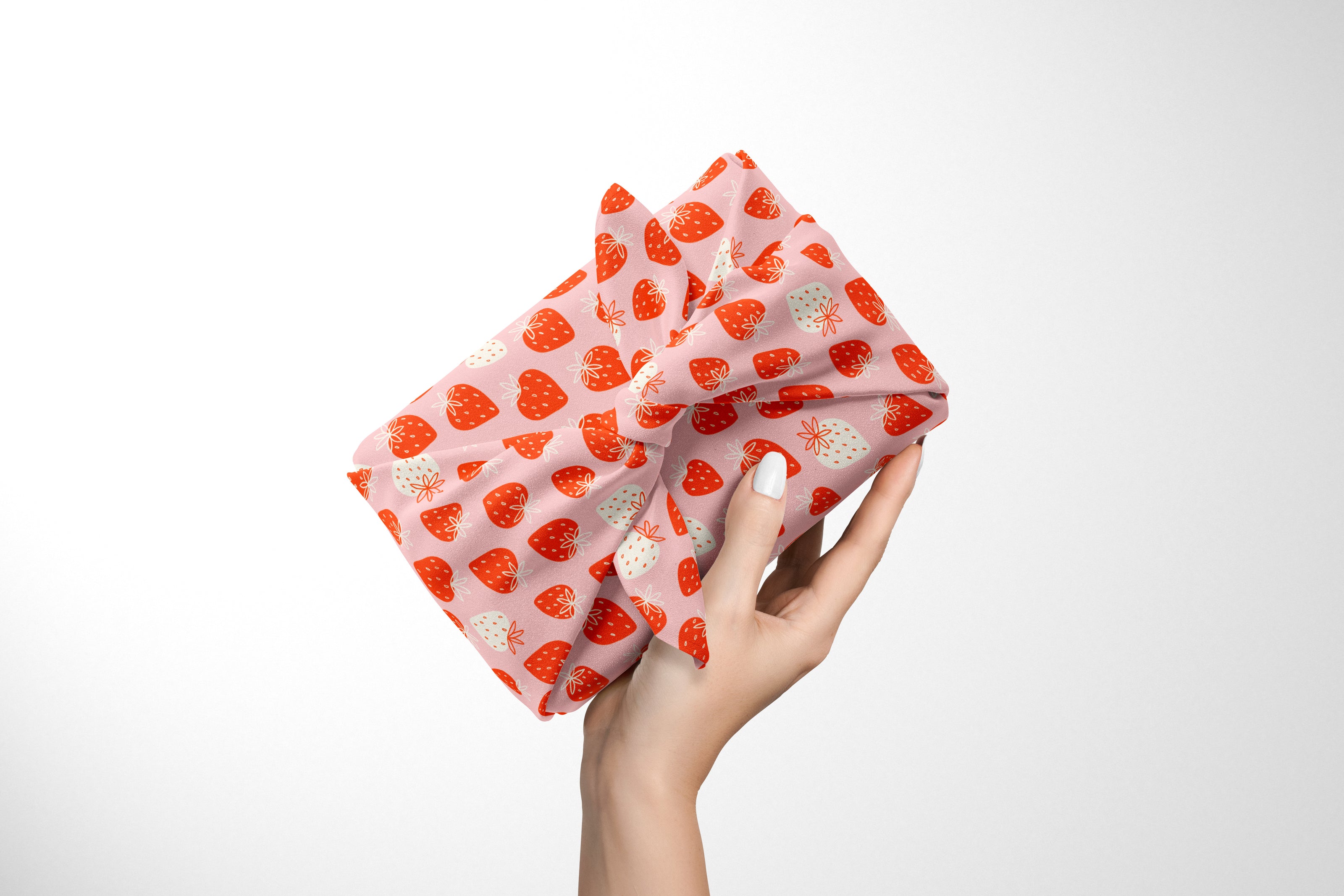 This design offers a modern twist on the classic strawberry pattern. A limited palette of vibrant red, soft pink, and creamy white gives it a fresh feel, balancing sweet, subtle tones with bold, eye-catching contrast.